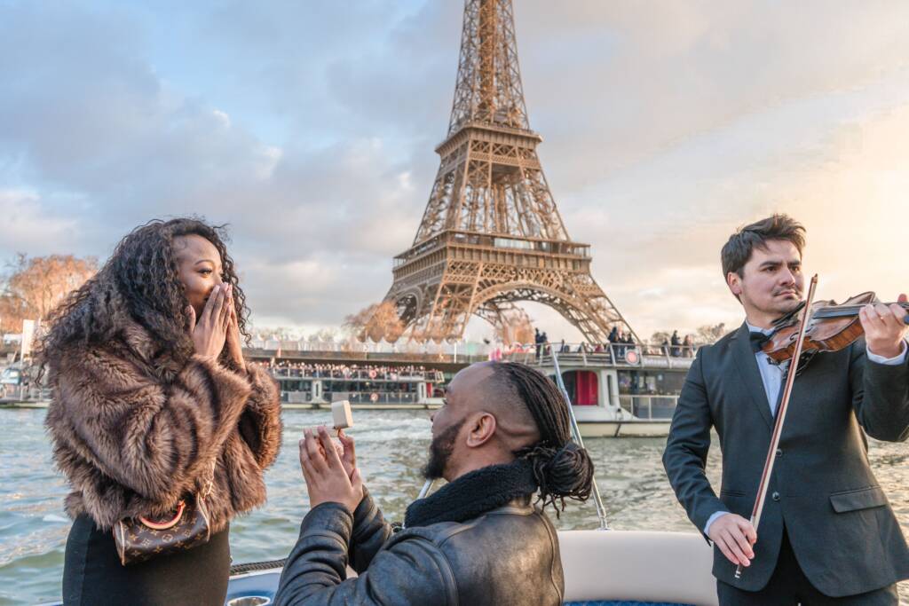 A private boat proposal on the Seine is one of the most exclusive and emotionally powerful ways to propose in Paris. Gliding past illuminated landmarks creates a sense of calm and timelessness that public locations cannot replicate.